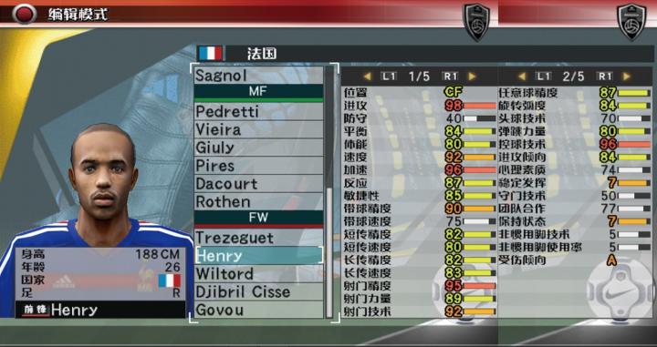 在游戏中,亨利的数据相比范尼要更加全面,98的进攻能力相比范尼更强,84的平衡能力让亨利在和强壮后卫的对抗上还是有些吃亏,可是92的速度和96的加速让亨利可以比大多后卫更快的追到皮球,加上90的带球,让亨利在盘带突破方面是有极强的能力的。