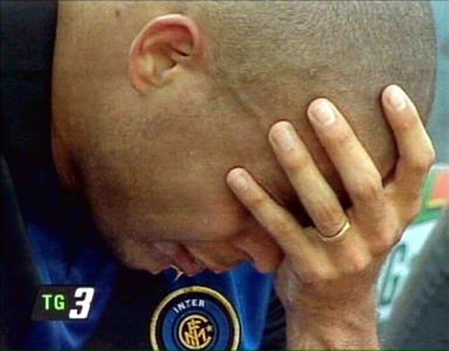 此后库珀用卡隆换下罗纳尔多,沮丧的巴西人坐在替补席上捂着脸,泪水夺眶而出。这是他为国米的最后一次出场。那年夏天,罗纳尔多在韩日世界杯上送出神奇表现,而之后外星人也登陆伯纳乌成为皇马的球员。但在和拉齐奥的那场比赛里,他下场后的神情是如此绝望,这也让国米球迷知道他们的球队彻底崩盘了。