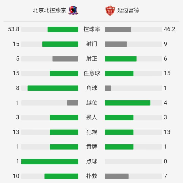 第35分钟,王建文弧顶处重炮轰门被朱泉双拳击出底线。一分钟后,多米尼克头球击中横梁!第51分钟,北控扳平比分!禁区前沿卜鑫横敲,王建文面对四名防守球员的围堵左脚劲射破门!北控2-2延边!