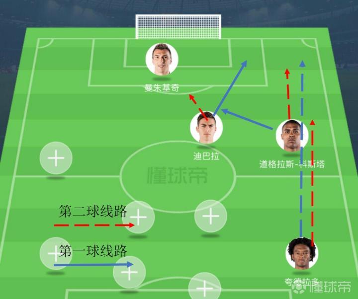 三叉戟:既然在首发阵容中雪藏伊瓜因,那么曼朱基奇就顺利成章地来到中锋位置。而与之匹配的,是科斯塔来到左路继续发挥他近期优秀的助攻状态,而迪巴拉则相应地来到右路,继续在那个“模仿梅球王”的位置上寻找发挥空间。