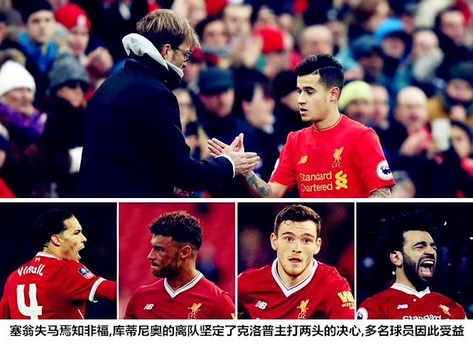 盘带高手库蒂尼奥的离队红军,球队在得球后通过中场的速度进一步加快,这种聚焦于两个禁区的比赛方式在联赛中的局限性很大,但比较适合战术针对性更强且注重攻守平衡的欧冠比赛。张伯伦在库蒂尼奥离队之后出场时间激增,他在对垒英超球队时的表现呈两极分化的走势——在连续击败(联赛/欧冠)曼城的比赛中,张伯伦可边可中、擅长持球冲击的特点,大幅度提升了红军中场的弹性、活力、流动性和压迫强度,极大地干扰了对手的传控体系,其出其不意地插上和远射对腰位力量薄弱的曼城造成了很大的杀伤;当对阵球路直接、不关注控球的“空中部队”曼联时,张伯伦防守位置感不佳、制空能力薄弱的缺点又成为了红军的七寸。