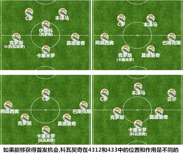 对比防守能力更强的卡塞米罗,科瓦契奇向后保护防线的意识不足,其擅长对持球人施压却怠于无球保护,三后腰体系能够很好地帮助他扬长避短。利物浦和巴塞罗那的优势都在于锋线和中卫,红军通过中场的速度更快,既然齐达内认为球风硬朗的科瓦契奇比伊斯科更加适合国家德比这样的大舞台,那么克罗地亚人也完全有理由出现在基辅之战的首发阵容中。