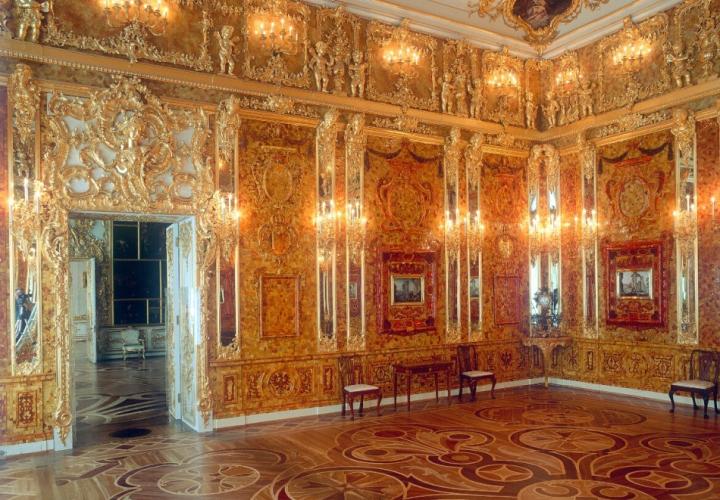 (图)琥珀屋位于叶卡捷琳娜宫内,原版已遭希特勒所盗,现为同等材料修复品