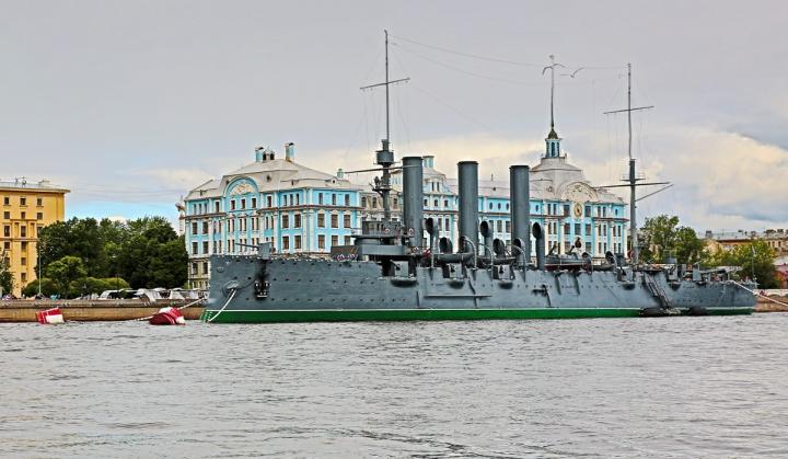 (图)阿芙乐尔号巡洋舰,现停靠于涅瓦河边成了一座海军博物馆