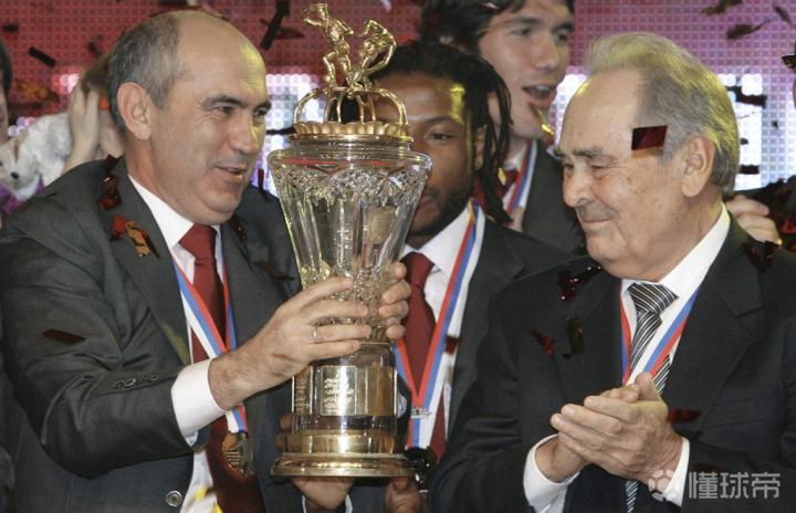 (图)2009年别尔德耶夫向时任鞑靼斯坦总统展示刚赢得的俄超冠军奖杯