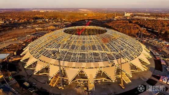 从设计上来看,球场将被笼罩在一个宏大的穹顶之中,可以想象当夜幕降临,在灯光的照射下,那个画面必然蔚为壮观。只不过,从一张三月拍摄份的照片上看,当时这座球场的长相,还是以下这样的。到时能不能达到我们想象中的那种效果,那可能就说不准了。