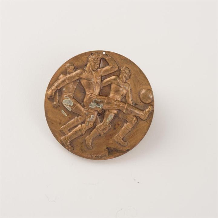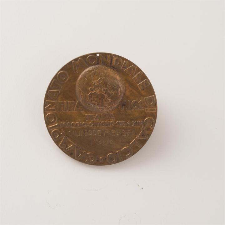▲国际米兰传奇球星梅阿查的1934年世界杯冠军奖牌,就收录在世界足球博物馆里。奖牌背面刻有梅阿查的名字。