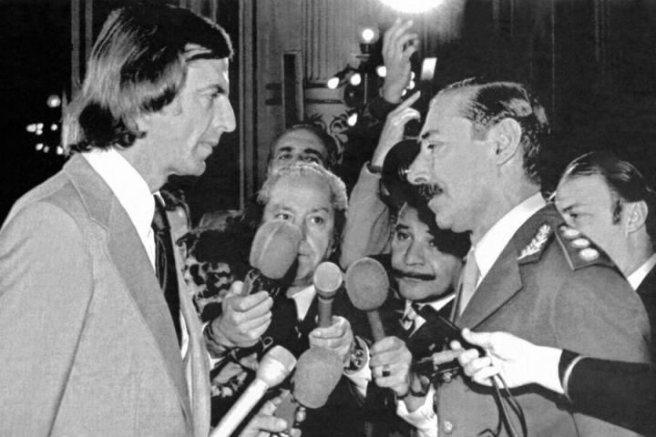 贝拉斯克斯的说法看似严谨,当时阿根廷与美国关系密切,美国政府一度是军政府的支持者。但翻阅当年的新闻显示,魏地拉确实在媒体的簇拥下,来到秘鲁更衣室表达了鼓励,但并未有基辛格陪同。