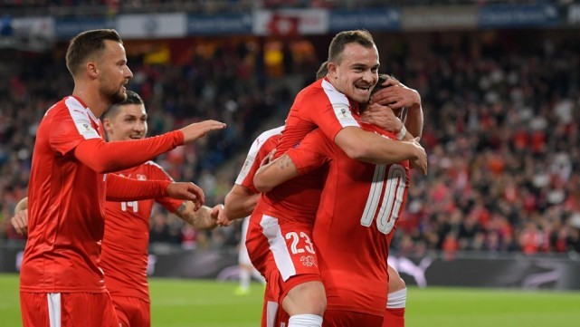 (图)里卡多-罗德里格斯为瑞士队攻入附加赛致胜进球