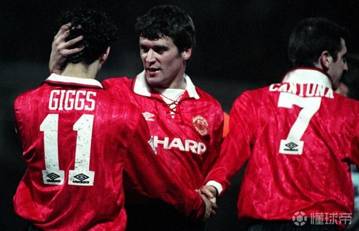 虽然很多人觉得他们的阵型是4-4-2,但其实他们可能是英超时代第一支使用4-2-3-1的球队。初到球队的罗伊-基恩与保罗-因斯组成了可怕的中场组合。边路则有李-夏普、坎切尔斯基和吉格斯的轮番冲击。而在前场,“国王”坎通纳突前,身后还有马克-休斯负责掌控节奏,画风简直不要更美。
