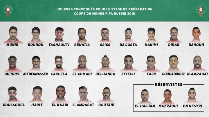 北京时间今天凌晨,摩洛哥队官方也公布了出战俄罗斯世界杯的23人大名单。尽管大多数球迷们对这个非洲国家的印象还停留在《卡萨布兰卡》这部电影上,但这次大名单中尤文后卫贝纳蒂亚、皇马的潜力新星阿什拉夫和阿贾克斯中场核心齐耶赫等名字却是我们耳熟能详的。也相信这支低调的摩洛哥队能为我们带来精彩的比赛。