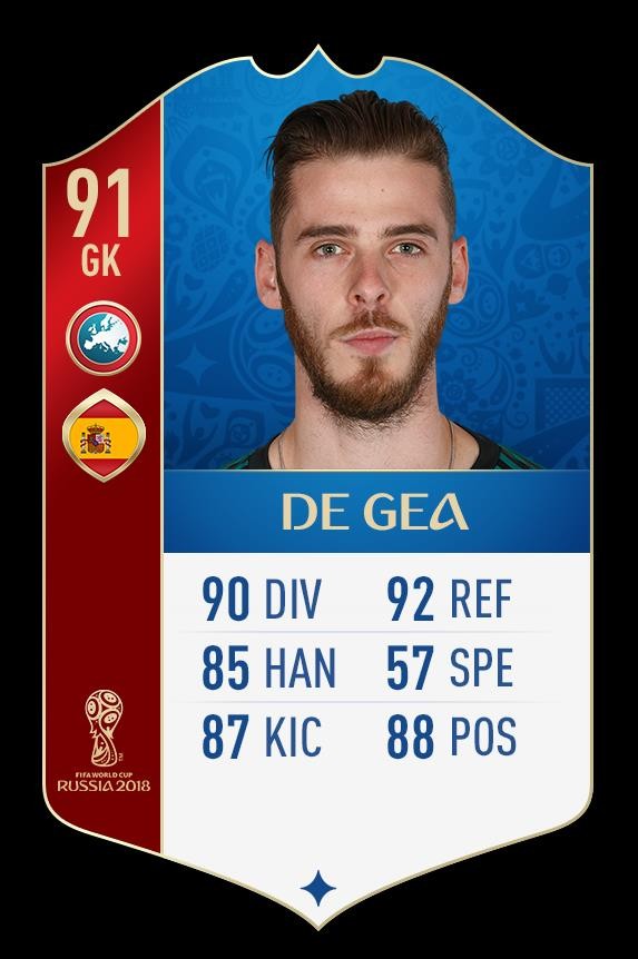 FIFA 18世界杯模式西班牙球员评分:德赫亚91,拉莫斯90