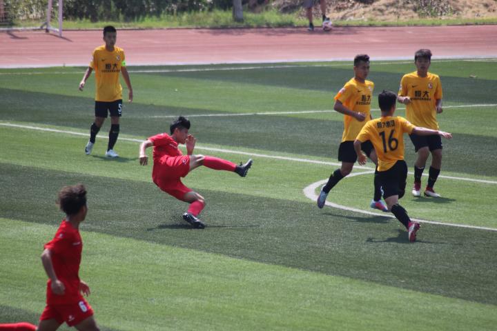 ▲厦门二中进球后全场比赛结束,厦门二中1:4不敌广州恒大淘宝U17,四场不败终结。
