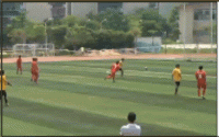 ▲但是厦门二中丢球之后反而放下了包袱,拼抢更加积极,持球更加大胆。很快就连续威胁到了恒大的球门,其中第9分钟9号王鑫海在恒大禁区外围精彩的摆脱之后起脚怒射,皮球被立柱挡出后在门线上弹了一下滑门而出!厦门二中错过绝佳扳平机会!