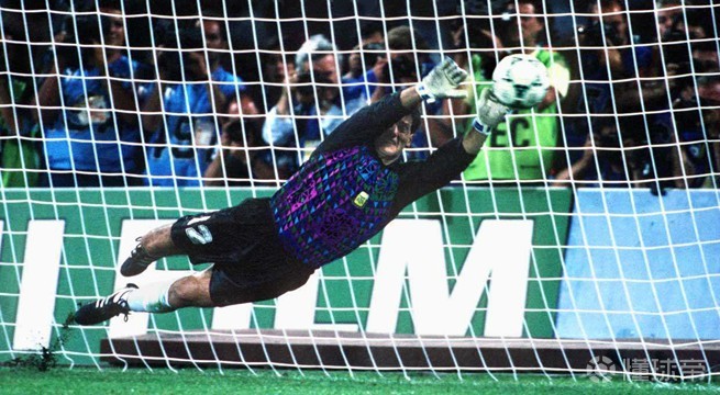 1990年的世界杯再次由意大利主办。本届杯赛吸引了近267亿次电视观众,门票收入达1.4亿美元,创下当时的最高纪录。赛事期间出现了一个又一个的精彩瞬间和经典元素,包括令人难忘的歌曲“意大利之夏”,让我们惊(mian)叹(hong)不(xin)已(tiao)的开幕式时装表演,还有德国与荷兰的“口水战”,米拉大叔的神奇表演,斯基拉奇的横空出世以及加斯克因的眼泪等等。但是回归到比赛内容的层面,以防守足球为主的思想,使本届杯赛的场均进球数达到当时的历史最低——只有2.21个。特别是进入到淘汰赛阶段,很多场次都是依靠点球决战分出胜负。所以,本文主要给大家回顾一下四位表现出色和极具特点的门将。