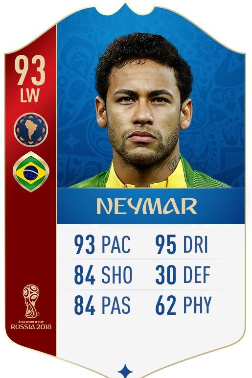 FIFA 18世界杯模式巴西球员评分:内马尔93,奥古斯托85
