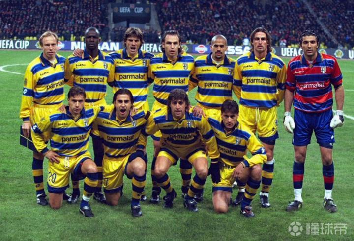 (鼎盛时期的帕尔马阵容:上排左起7位:森西尼,图拉姆,瓦诺利,博格西昂 ,贝隆,迪诺巴乔 ,布冯