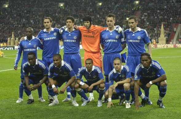 切尔西的首发阵容为:马克莱莱、卡瓦略、巴拉克、切赫、特里、兰帕德、埃辛、马卢达、阿什利科尔、乔科尔和德罗巴