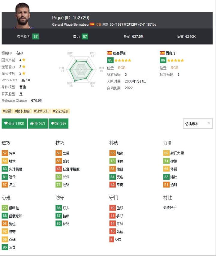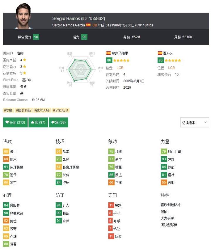 注:文中截图的FIFA 18球员数据来自FIFA 18单机版数据库(https://sofifa.com/),非UT模式数据。