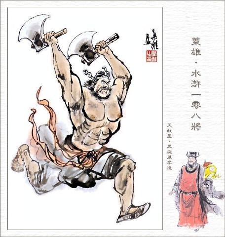 世界杯一百单八将第22位——天杀星黑旋风李逵,李逵是沂水县百丈村人氏,小名叫“铁牛”,长得黝黑,杀人不留步,常常“照排砍去”,人见人怕,绰号“黑旋风”。李逵是《水浒传》中最鲁莽的人物,但他为人心粗胆大、率直忠诚、嫉恶如仇、仗义疏财。梁山受招安后,李逵被封为镇江润州都统制,宋江被赐毒酒之后,担心李逵再次起兵造反复仇,便让李逵也饮下毒酒,李逵随后身亡。