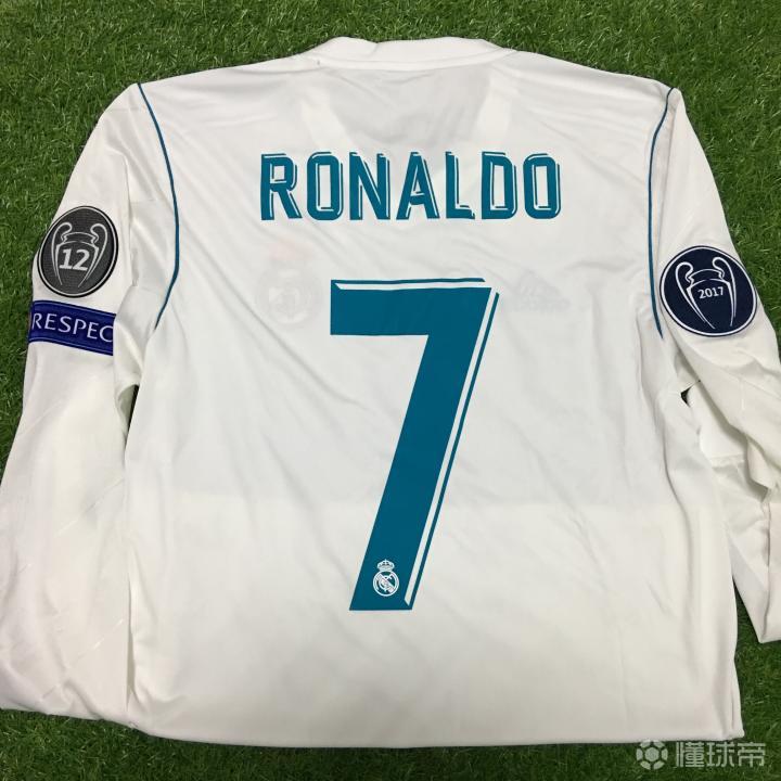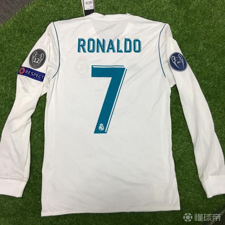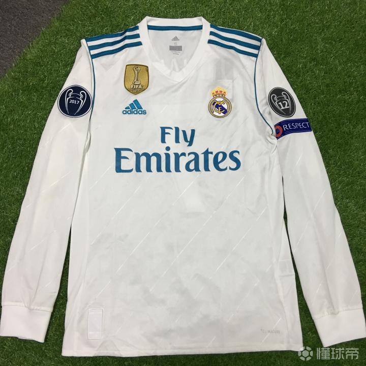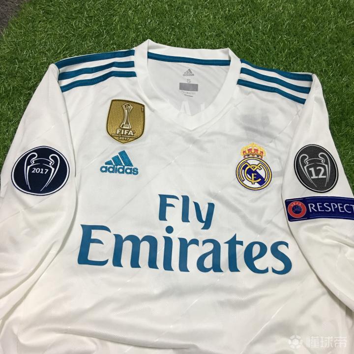 这是一件皇马主场长袖球衣印杯赛7号,加2017欧冠卫冕冠军章、欧冠12冠章、欧足联公平竞赛respect章以及2017世俱杯冠军盾,没办法皇马勋章太多也费钱。