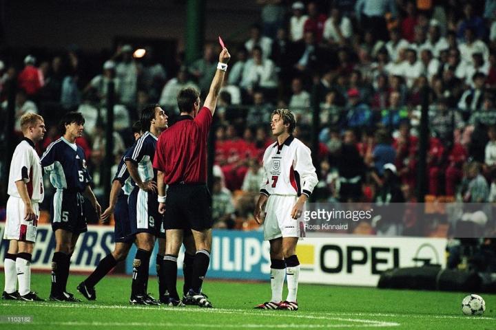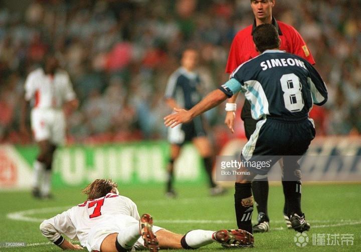 所以在20年后,了解了足球鞋之后,我还能对所有的战靴如数家珍,上一集我们讲述了世界杯上那些色彩斑斓的足球鞋,但在1998年世界杯,黑色足球鞋还是主流,所以我们经典还是来讲述一下法国世界杯上的经典黑色足球鞋。1998年世界杯,影响最大的事件,除了齐达内在决赛中的梅开二度,贝克汉姆和西蒙尼恩怨情仇应该是令人最难忘的。所以我们就从这里开始讲起。因为这一事件不仅仅是两名球员的碰瓷事件,也是1998年世界杯两大品牌最主打的两款鞋的较量。那就是天足和水星。小贝和西蒙尼的交通事故我们不用赘述,世人皆知。