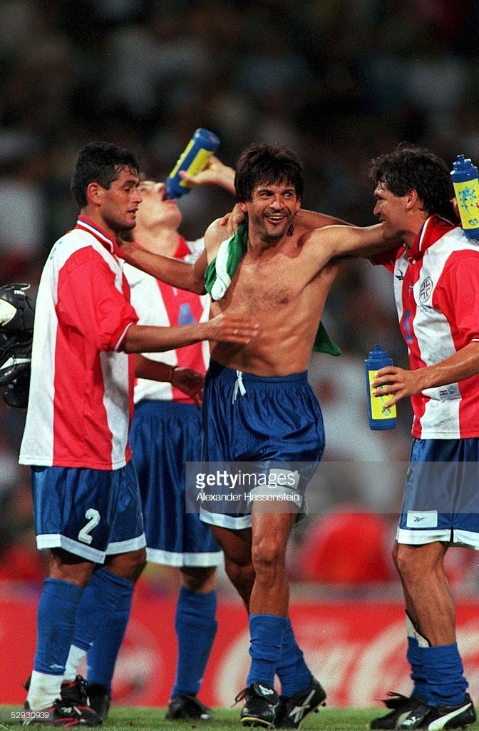 reebok的另一位重要代言舒梅切尔,使用的则是更早的第一代sidewinder,这款鞋的设计非常经典,很像当年肖恩坎普的锐步篮球鞋,应该出自同一设计师之手,采用牛皮鞋面,大号鞋舌,也是意大利产。所以当年reebok在法国世界杯上是四剑齐发,不知不觉变成了中流砥柱。此外,巴拉圭队的边后卫阿塞,居然穿的也是舒梅切尔同款的sidewinder 1,但是黑红配色的。
