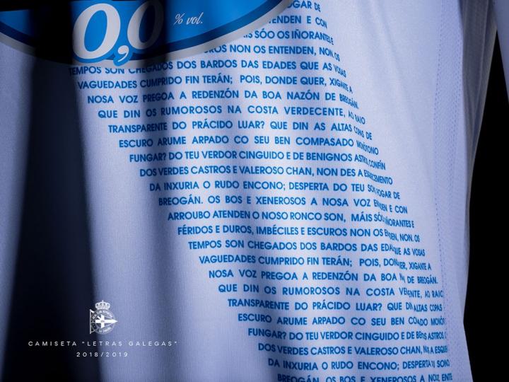 球衣拥有一个带有天蓝色镶边的圆领,背后衣领下方除了加入一面加利西亚自治区区旗外,还加入“Letras Galegas,17 de Maio”(加利西亚语言节,5月17日)字样。