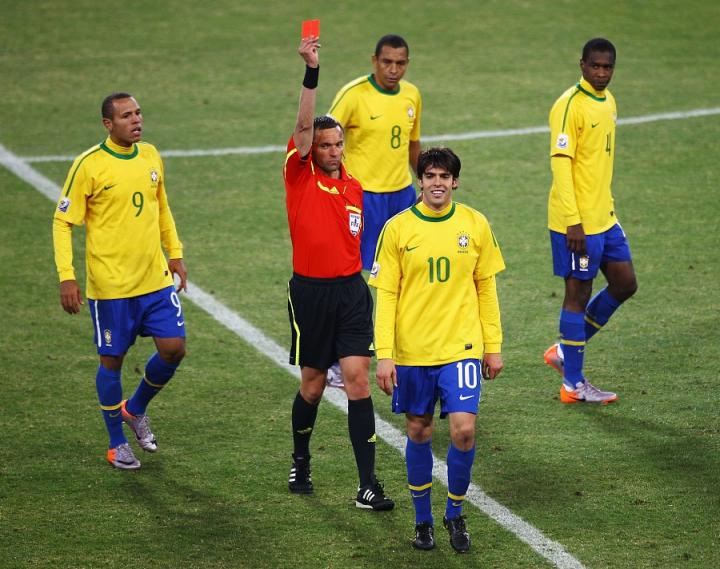 (图)关于2010的巴西队,恐怕大家最难忘的就是卡卡被罚下的这个瞬间了吧!
