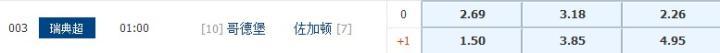 竞彩让球胜平负(+1)推荐:哥德堡