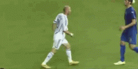 随后的比赛中,意大利中锋托尼发挥神勇,意大利队也利用其身高优势频繁发动有威胁进攻,但在巴特斯的神勇发挥下,意大利人数次进攻均无功而返。比赛的转折点发生在加时赛下半场,全场在马特拉齐碎碎念围绕下的齐达内丧失冷静,用头将其撞翻在地,主裁判埃里松多直接向其出示红牌,这张红牌也成为了齐达内职业生涯告别演出中的终结者,而齐达内在离场时与大力神杯擦肩而过的画面也令无数球迷心痛。
