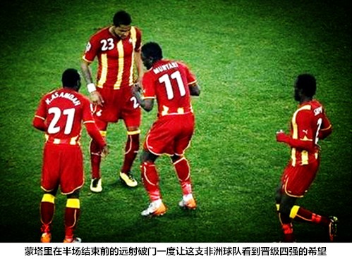 而小组赛收获一胜一平一负的加纳成为了非洲球队在淘汰赛阶段的独苗。在当家射手吉安的率领下,加纳队在1/8决赛通过加时赛击败美国,成功闯入世界杯八强,而球迷们更期待的则是他们能够击败乌拉圭,成为历史上首支进军四强的非洲球队。