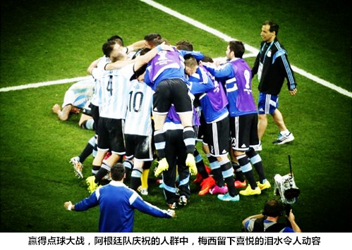 点球大战中,阿根廷门将罗梅罗成为了绝对焦点,其先后扑出弗拉尔以及斯内德的点球,而当老将马克西-罗德里格斯最后一个出场沉稳的将制胜点球罚进时,肩负重压的阿根廷队长梅西再也控制不住自己的泪水,他肆意的狂奔庆祝,那一刻所有关注梅西的球迷都随之动容,而罗本在场边安慰在怀中痛苦的儿子,这样的画面同样成为了世界杯画卷中经典的定格。