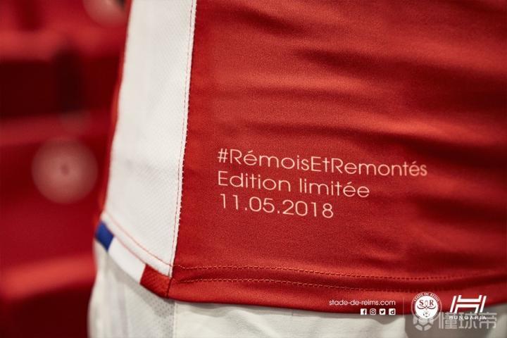 新球衣拥有一个复古的白色罗纹衣领,并在领口与袖口上加入象征法国国旗蓝白红三色条纹装饰。球衣下摆上加#RémoisetRemontés的社交媒体话题标签,并附上球队升级的重要时间点。