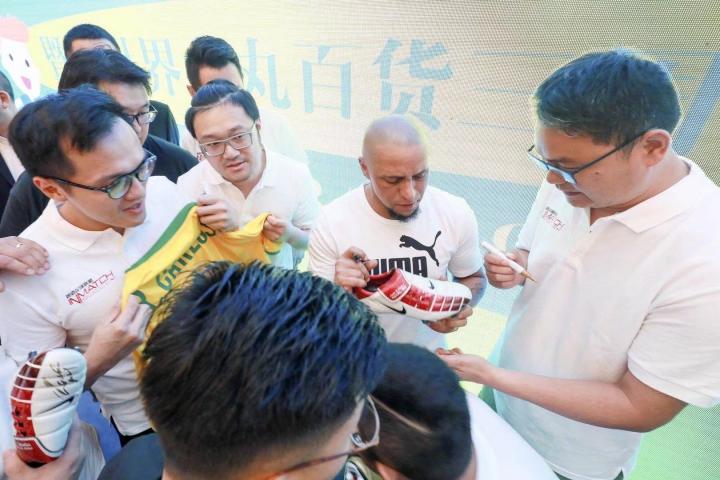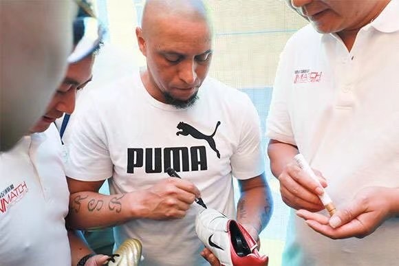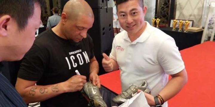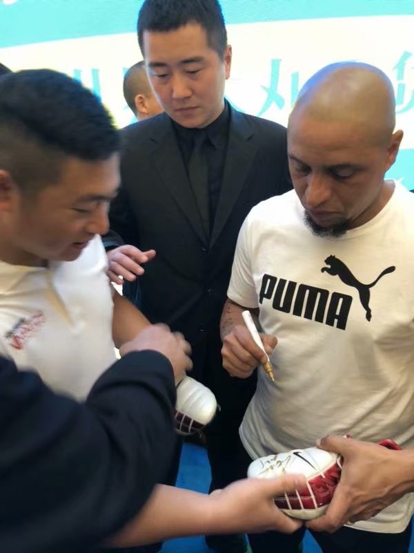 而卡洛斯也被这样的藏品震撼了,面对着这些已经有15年历史的战靴,他边签名边表示了赞赏,而潍坊卡洛斯也梦想成真,自己感觉和做梦一样,可以和偶像如此近距离的互动。