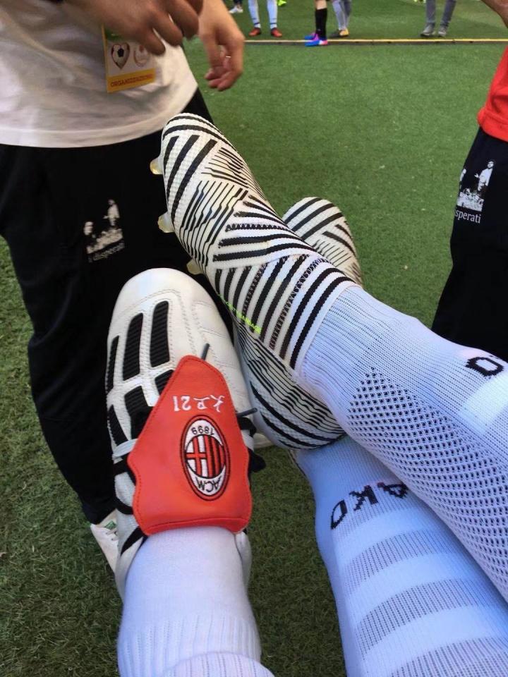 而另一位米兰资深球迷杜伟,受邀参加了米兰圣西罗的慈善足球赛。正在为穿什么鞋得瑟的事情发愁,此时他的众筹复刻来了。所以这双鞋就在5月26日踏上了圣西罗的草皮,他似乎也成为了第一个在圣西罗踢球的中国人。