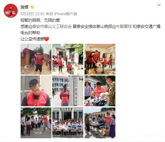 暖心,贺惯间歇期做公益我有女朋友 @懂球帝2018-05-29 10:51中超联赛进入休赛期,征战11轮过后的球员们也进入了假期。与很多球员选择出国游玩放松不一样,上海上港球员贺惯选择了在假期做公益,传递自己的爱心。活动结束后,他在自己微博上晒出了照片。他跟着义工联合会为贫困家庭,送去温暖;化身足球教练,为当地一所小学送去足球装备,更是言传身教,指导小朋友们踢球。他在微博中写到:“短暂的假期,无限的爱。让公益传递爱。”展开更多