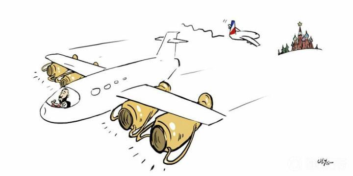 Canal+推特晒出一幅漫画,画中法国队的飞机正朝着世界杯的举办地俄罗斯飞去,而本泽马则心情愉快地开着飞机回马德里,机翼下方是金光闪闪的欧冠奖杯。