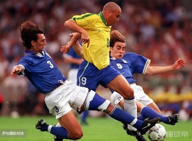 那时留着长发的卡纳瓦罗还略显青涩,而与他一起坐镇意大利后防的,是另一位足坛历史上数一数二的后卫马尔蒂尼。在与巴西队的比赛中,这两位传奇级别的后卫同时从身后放铲,目的只有一个,那就是截下外星人罗纳尔多的单刀。