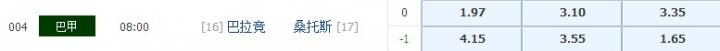 亚盘推荐:桑托斯+0.25