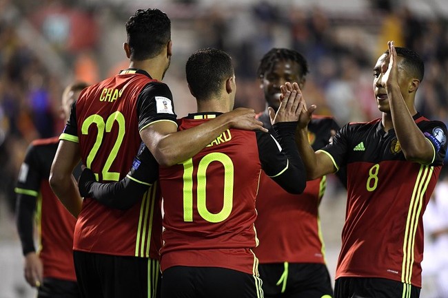 因此,除了主场面对希腊时靠着卢卡库的进球惊险拿到一分,以及在提前出线的情况下和波黑打出一场4-3的进球大战之外,比利时基本上在整个预选赛过程中都没有遇到什么像样的抵抗。光在直布罗陀身上,欧洲红魔两回合就收获了多达15个净胜球。10场比赛结束,他们轰入43球的强大火力与德国队并列欧洲区首位。