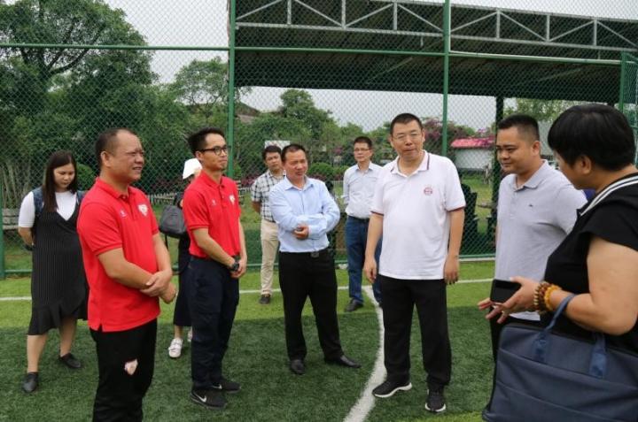 为了办好本次比赛,南宁市体育局局长李兵(右三)亲临宏旭俱乐部调研指导