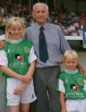 1999年,富勒姆vs约维尔镇赛前,亚历克·斯托克与孙子孙女合影留念