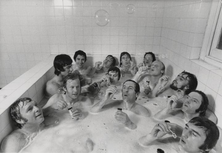1975年,富勒姆一线队球员在公共浴室里吹泡泡