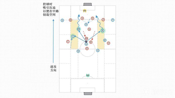 控球时吸引压迫以便在中路创造空间