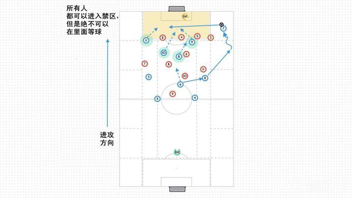 所有人都可以进入禁区,但是绝不可以在里面等球