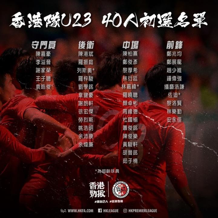 在本期40人初选名单中,郭嘉诺征召的三名超龄球员分别是杰志的列斯奥、林嘉纬和佐迪;另外,梅州客家的徐宏杰、和富大埔的陈俊乐在列。