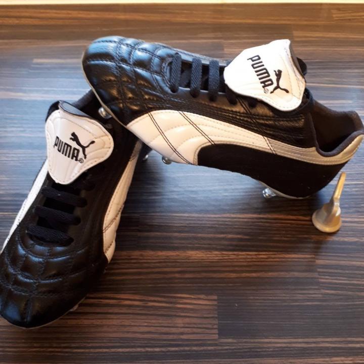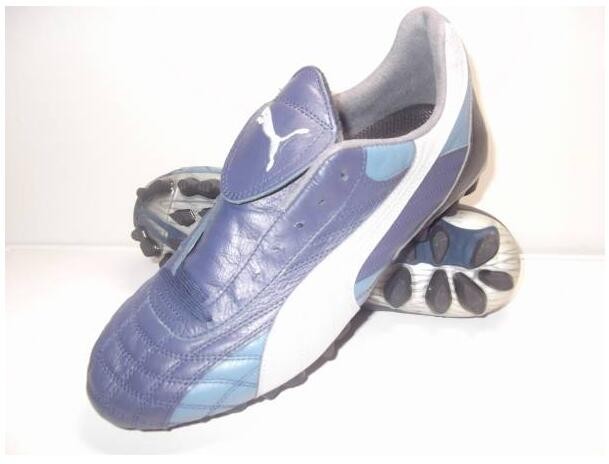 第一款是非常有名的king sl,这款鞋是一款受到众多好评的足球鞋,和传统的king用了的一样鞋面材料,但是重量上轻了很多,而且在各方面非常均衡,基本无懈可击。也是2002年世界杯上使用最多的puma足球鞋,巴拉圭队的中场核心,阿库尼亚,前锋冈波斯,还有卡萨雷斯都使用这款足球鞋。而当年意大利队的布冯,喀麦隆的埃托奥都是这款鞋的代言人。