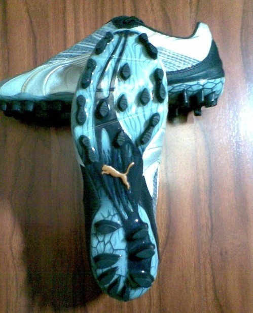 接下来说puma第二款鞋蹴道,这款鞋是puma是2002的新产品,用超纤编制面料,有两种鞋面,其中一种有热熔膜覆盖,圣克鲁兹使用的就是热熔膜覆盖的版本。中国队的杨晨使用的也是这款鞋。克罗地亚的斯坦尼奇,穿过另一款黑蓝色的编制鞋面蹴道。