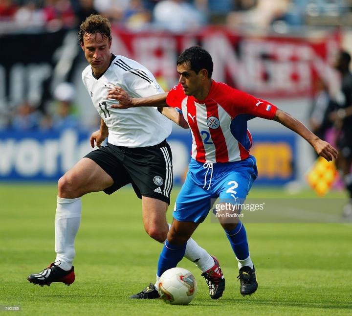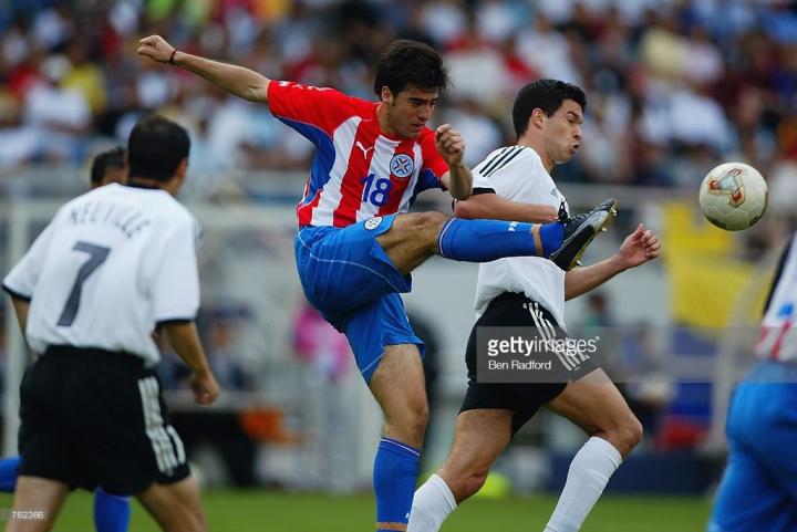 而更夸张的是另一位巴拉圭著名球员阿塞,他穿的鞋居然是和日本著名国脚中泽佑二一样的del mundo 2002款黑黄,更可怕的是,当时中泽佑二还不是国脚。所以说,当年的巴拉圭的战靴,绝对是那届世界杯第一奇葩。